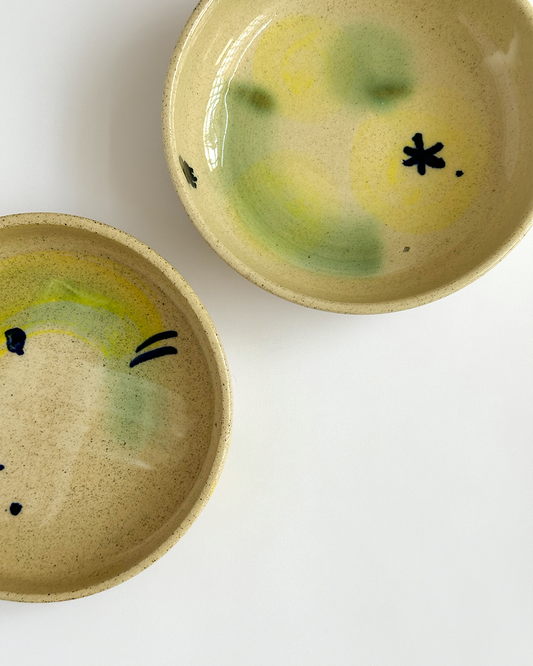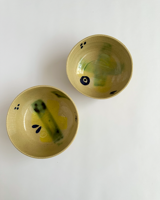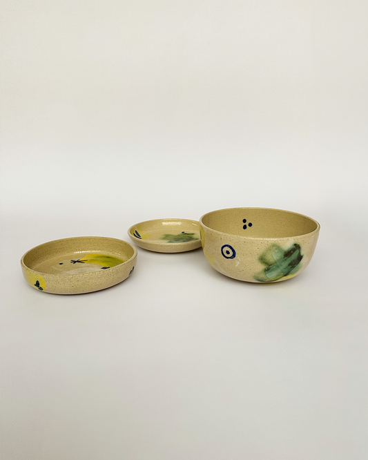 Pieces made on a potter’s wheel and decorated by hand, one by one.All of them are Glossy finish, Dishwasher safe and Microwave safe.