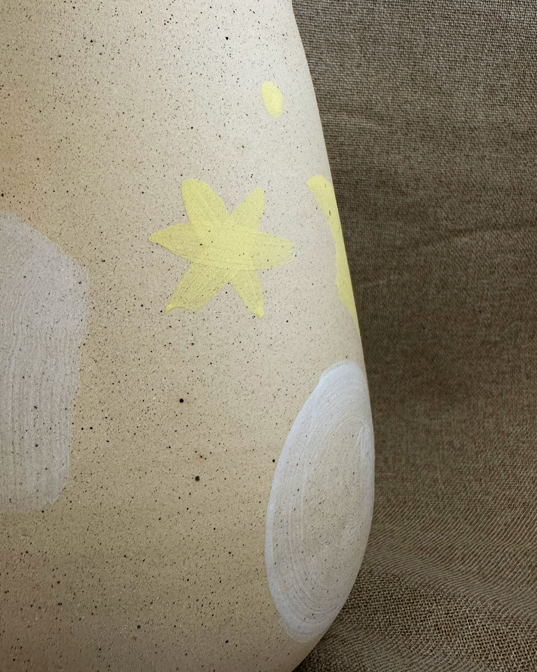 Expressive brushstrokes of engobe are employed to create depth and character.